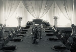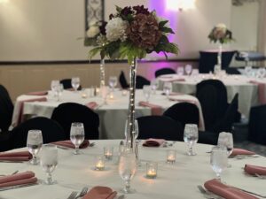 Michael’s can make any budget Sparkle. Our 2025 Packages start at $45.00 + tax per person. We offer a rainbow of colored linen napkins, select colors for table linen and black chair covers to enhance your theme or the season. In addition, we offer a small selection of centerpiece items at a minimal rental charge.